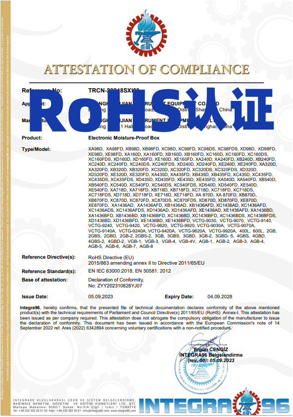 ?西箭品于防潮箱通過歐盟CE&RoHS認證